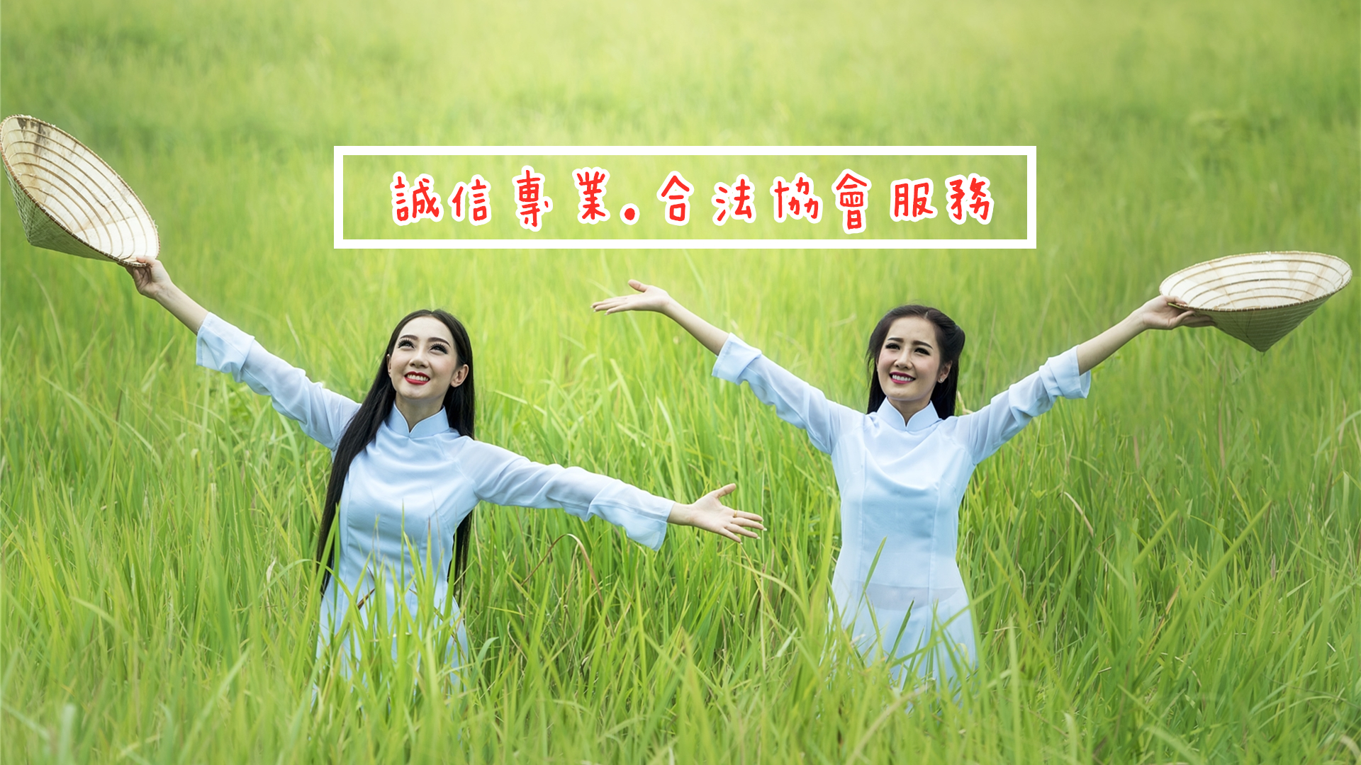 合法外籍新娘台灣配合代辦中心 切勿尋找網路視訊配對 全程簽約執行,陪同您至越南親自相親 越南新娘介紹,大陸新娘仲介 依據您自身條件篩選對象